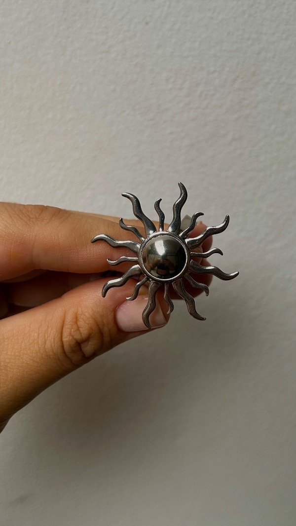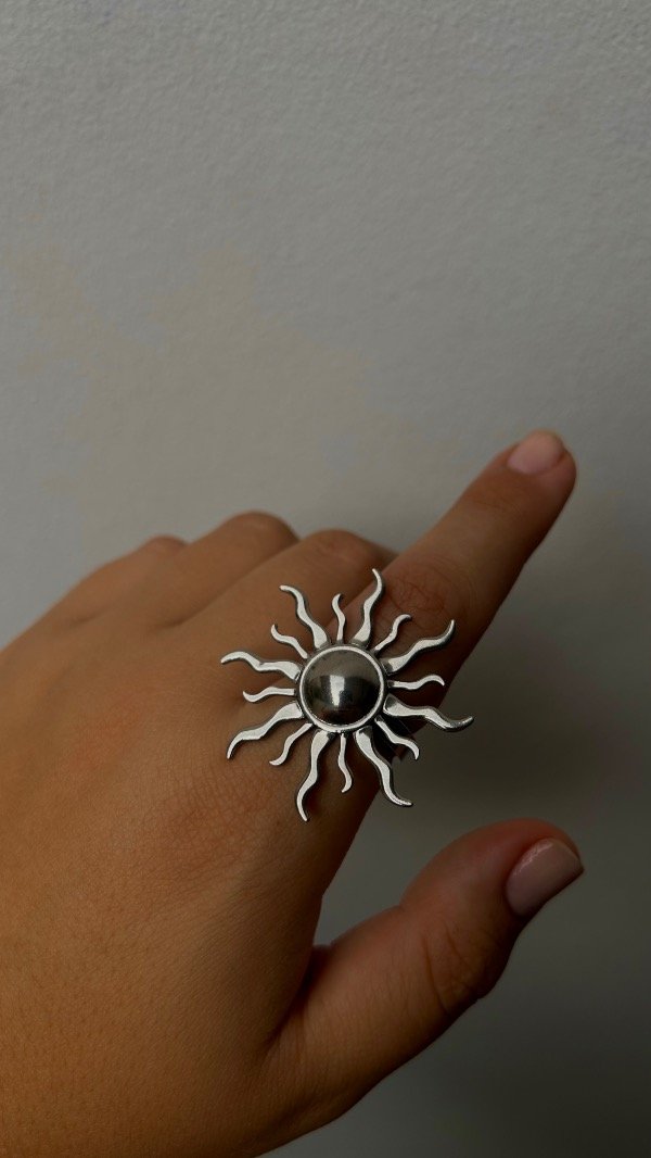 Hay anillos que simplemente tienen "onda", y el Ícaro es uno de ellos. Grande, llamativo y con un diseño de sol que levanta cualquier look, desde uno súper básico de día hasta algo más producido para la noche.