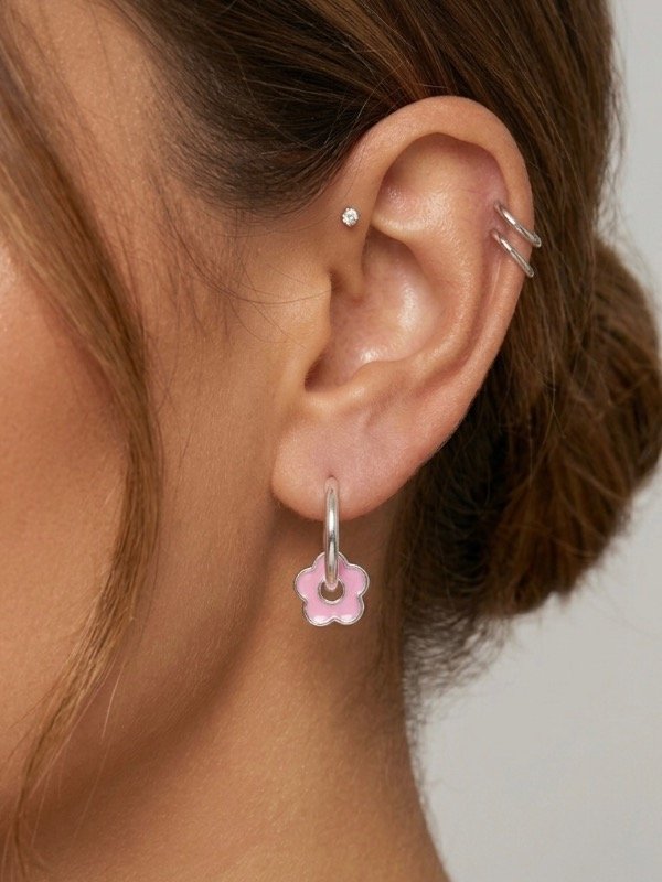 Son argollitas de acero blanco con cierre click (mega cómodas) y traen un dije de florcita que podés sacar cuando quieras.
