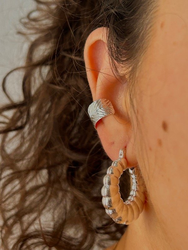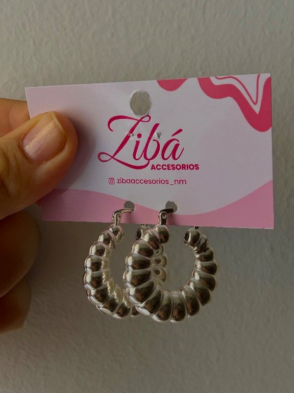 🌙 Aros laminados en plata, inflados 2,5 cm con detalles labrados ✨