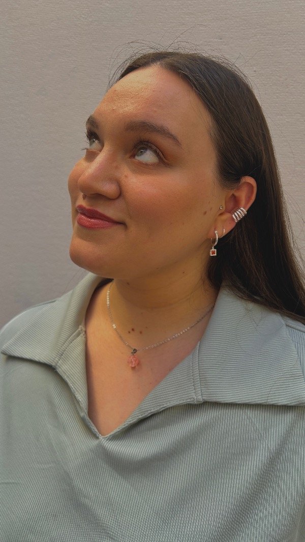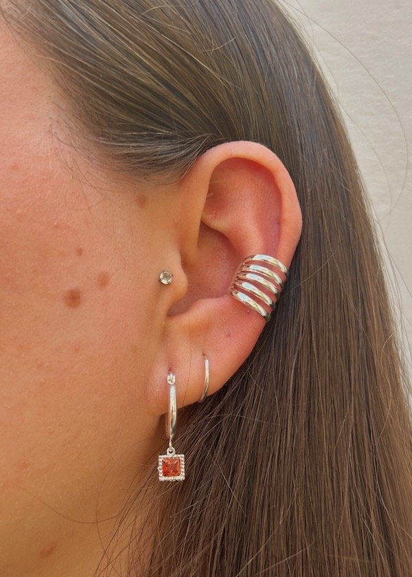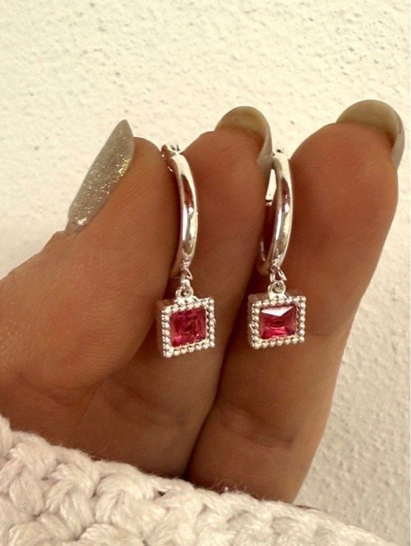 Son de acero blanco, tamaño 1,5 cm (ni muy chicas ni muy grandes) y traen un dije cuadradito color rojizo que les da ese toque especial sin dejar de ser delicadas.