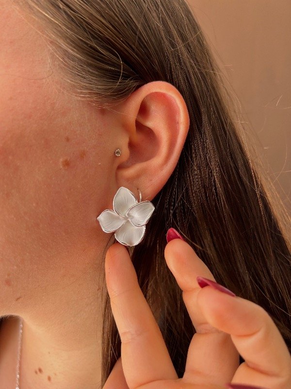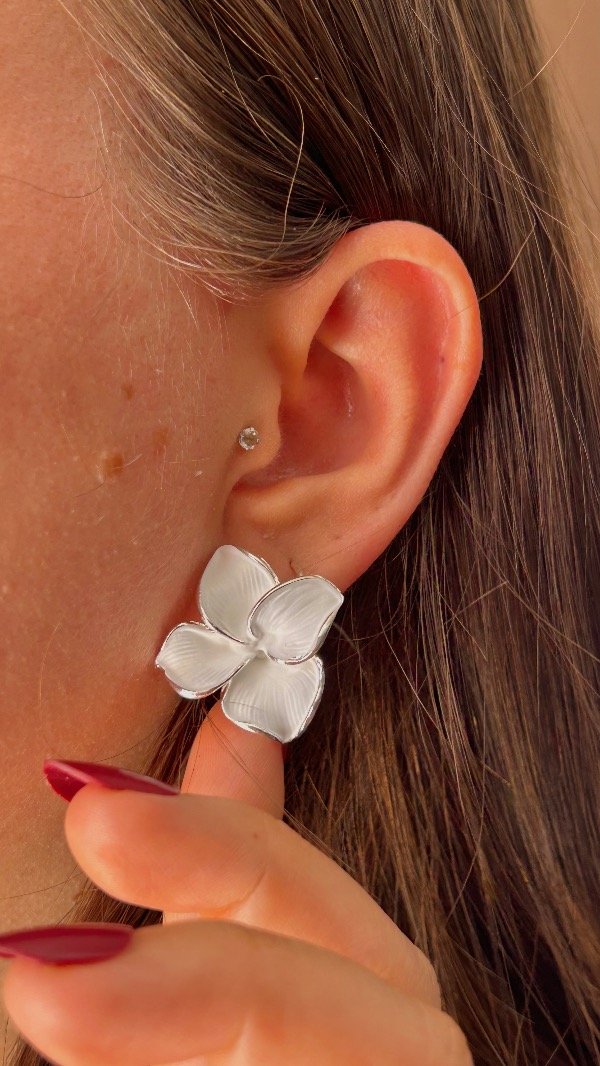 Hay accesorios que no solo acompañan, sino que arman el outfit completo. Estos aros de flores blancas son los protagonistas indiscutidos de cualquier look: son grandes, llamativos y tienen esa luz que te cambia la cara al instante.