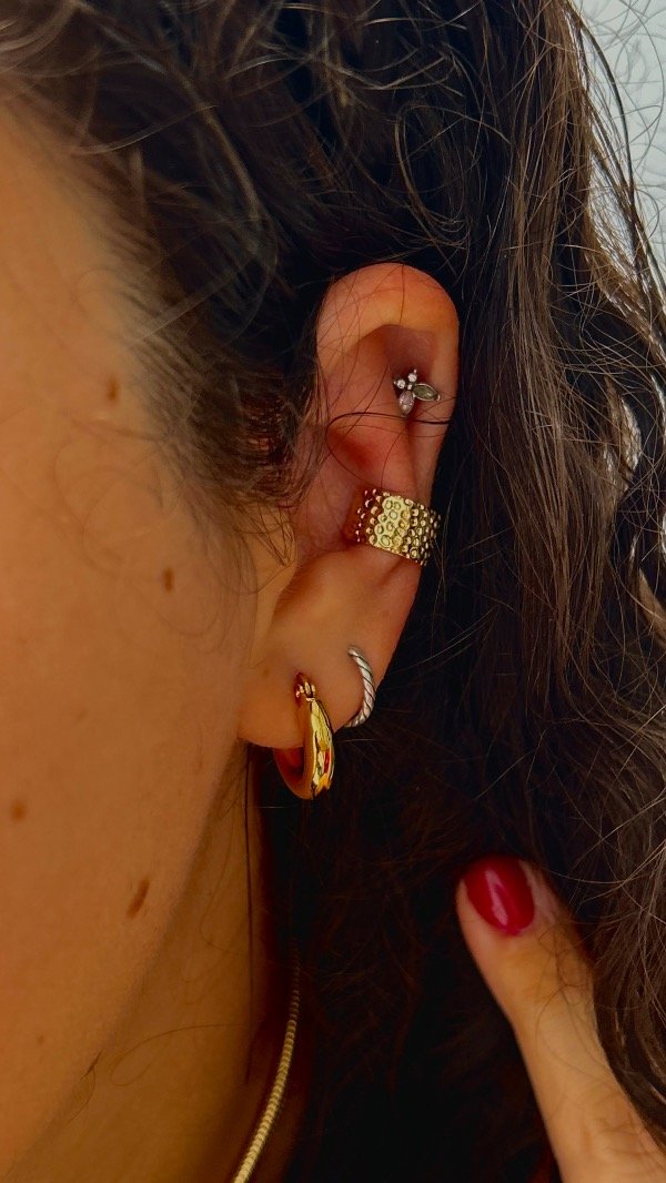 Este earcuff se coloca a presión, queda firme y es súper cómodo, así que podés usarlo todo el día sin que moleste.