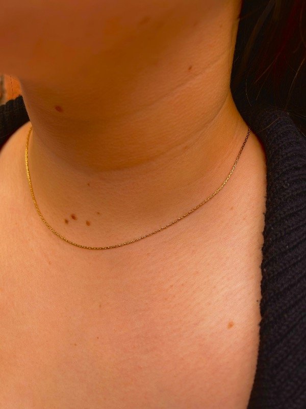 Esta cadena es de esas que no fallan nunca. Tiene un entramado finito que le da una textura diferente a la clásica cadena lisa, lo que la hace súper minimal pero con ese "algo" especial. Ahora que se viene el frío, es el accesorio ideal para resaltar sobre una polerita o un tejido fino: le da luz al outfit sin cargarlo.