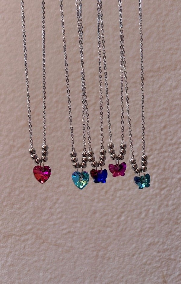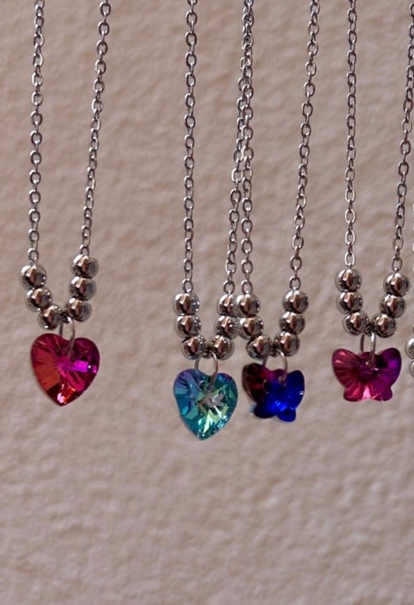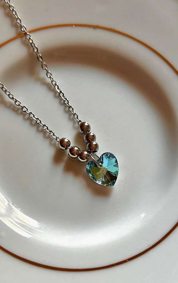 Largo 45 cm | Dije de corazón tornasolado símil Swarovski + detalle de bolitas