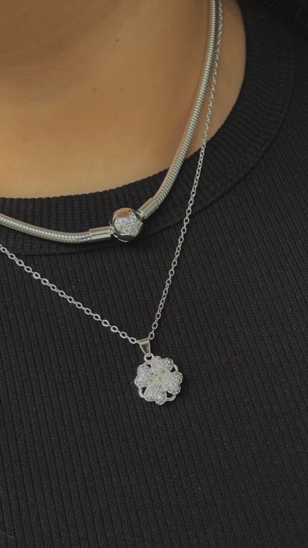 Este collar es mucho más que un accesorio lindo: es tu nuevo cable a tierra. Combina la cadena espejito, que tiene ese brillo continuo espectacular, con un dije de trebol cargado de micropavé.