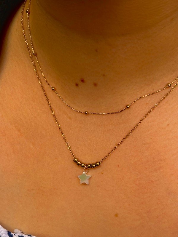 Largo 45 cm | Dije de estrella en nácar blanco + detalle de bolitas