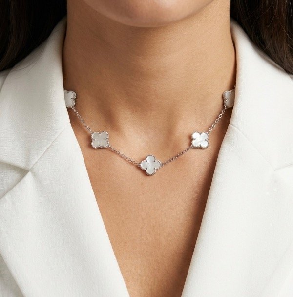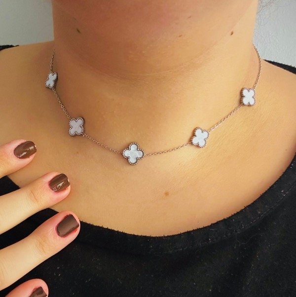 45 cm de largo ✨ | 5 tréboles en nácar blanco