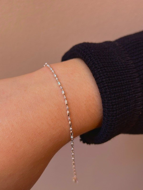 Esta es la pulsera que te ponés hoy y no te la sacás más. Al ser tan fina, es ese detalle de luz que te acompaña sin que lo sientas, dándole a tu muñeca una onda súper delicada y cuidada.